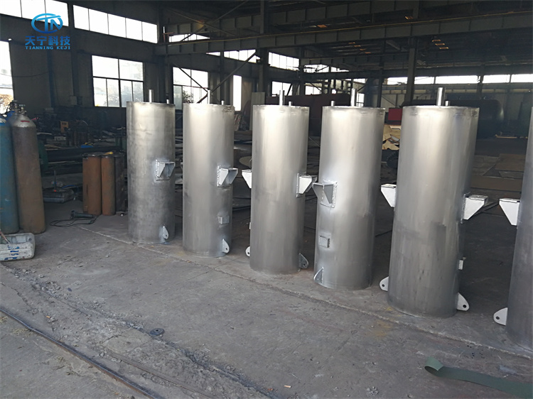 ⑥對(duì)用于除氧器、射汽式抽氣器排汽等小排量的排汽消音器,外形設(shè)計(jì)成管式,安裝較為方便。安裝方式排汽消聲器垂直地沿主廠房墻、柱安裝。在墻、柱上設(shè)置型鋼滑動(dòng)支架,將消音器及管道架設(shè)其上,消音器排放口應(yīng)對(duì)著屋頂方向。應(yīng)注意,該型消音器出廠時(shí)已制有固定支座,當(dāng)采用滑動(dòng)支架式安裝時(shí),固定支座可以不用。